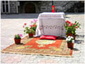 Ogni anno, sessanta giorni dopo la Pasqua, la Chiesa celebra il "Corpus Domini", festività religiosa in onore dell'Eucaristia (il "Corpo" di Cristo sotto il segno sacramentale del pane). Celebrata la Messa, il Pane Eucaristico viene portato per le vie del paese seguito da un corteo di fedeli. Nel rispetto di un'antica tradizione (nata a Firenze agli inizi del 1500 per volontà dei Granduchi medicei e poi diffusasi in tutta l'Italia) coperte e tessuti ricamati vengono stesi da balconi e finestre per abbellire il percorso della processione. In tempi più remoti, le famiglie di Fallo si misuravano in una vera e propria "gara" per ostentare i tessuti più pregiati e variopinti. Ai bambini era dato l'onore di disseminare con petali di fiori l'acciottolato su cui passava il corteo. |