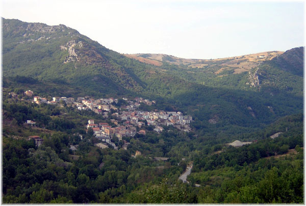 Il paese di Quadri visto dalla strada rotabile che conduce a Borrello
